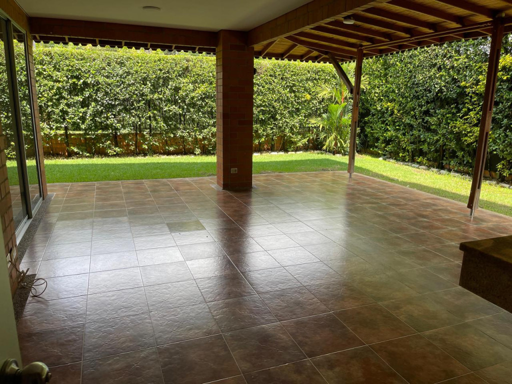 Tenemos la casa ideal para ti. Cuenta con parqueadero para tres vehículos, (2) parqueaderos paralelos cubiertos y (1) descubierto, con depósito amplio. Primer Nivel: Consta de baño social, star, recibidor, cocina integral a gas natural, zona de ropas con patio, habitación del servicio con baño, comedor, sala con ventanal grande, estadero grande con una hermosa zona verde, el agua del jardín trasero es gratuita ya que tiene un río subterráneo. Segundo nivel: Tiene cuatro habitaciones, (1) habitación con balcón, (2) habitación principal con aire acondicionado, balcón, vestier, baño amplio, (3) habitación con aire acondicionado, baño y vista a la zona verde, (4) habitación con aire acondicionado, baño de habitaciones, estudio con balcón. El conjunto cuenta con salón social, Piscina, Gimnasio, parqueadero para visitantes.