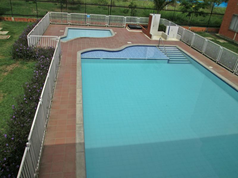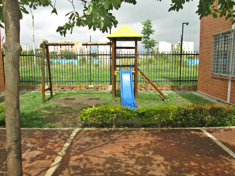 Excelente apartamento al sur de la ciudad en primer piso, consta de 2 habitaciones dos con closet, la habitación principal cuenta con baño, estudio, sala comedor, baño social, cocina integral con campana extractora a gas natural, zona de oficios con instalación para lavadora, patio, pisos en cerámica. La unidad cuenta con parqueadero comunitario, parqueadero para visitantes dentro de la unidad, zonas verdes, juegos infantiles, piscina para adultos y niños, salón social, vigilancia las 24 horas.