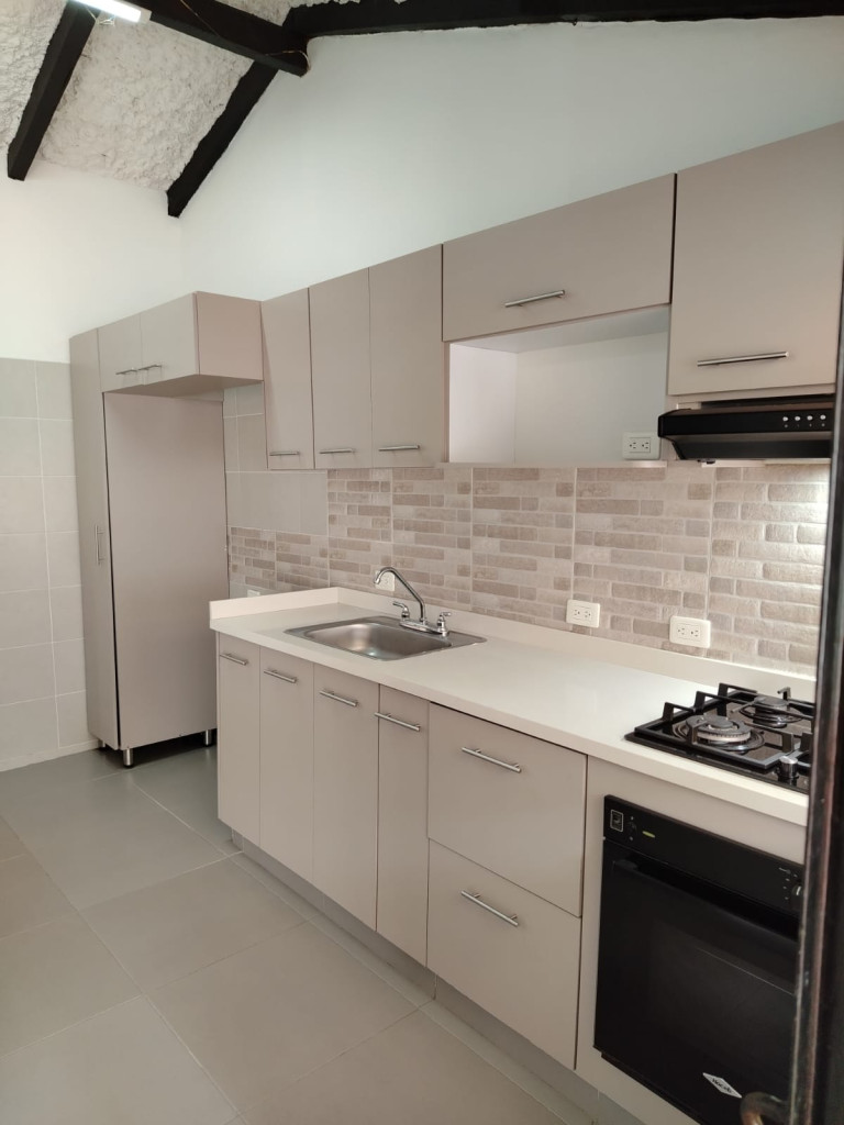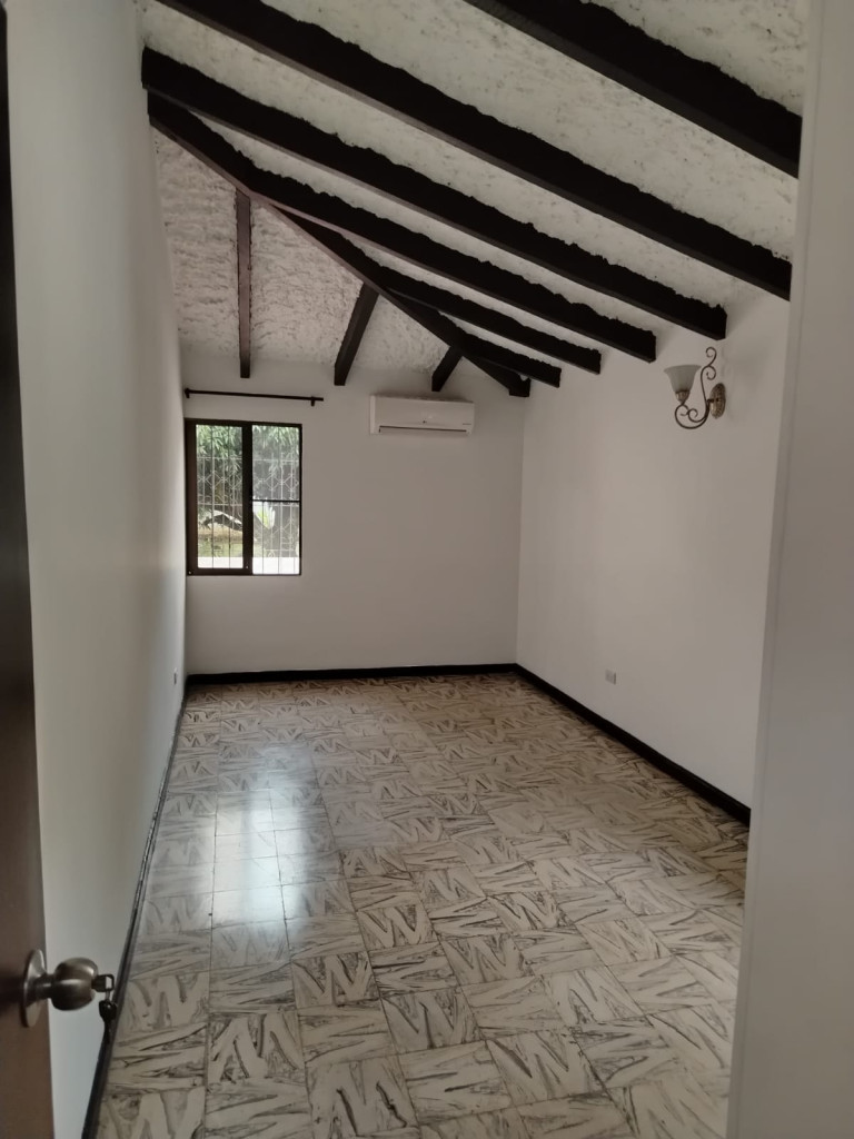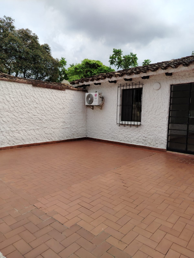 Se ofrece inmueble en venta, el cual cuenta con garaje con portón grande y puerta de acceso peatonal, con capacidad para dos (2) vehículos. Dispone de sala-comedor, cocina integral, baño social y pasillo de circulación. El área privada está conformada por una habitación principal con aire acondicionado, dos habitaciones auxiliares con clóset y baño de alcobas. Adicionalmente, cuenta con zona de oficios con lavadero y poceta, instalación para lavadora, habitación de servicio o estudio y patio descubierto enrejado, el cual corresponde a zona común.